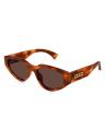From the Gucci Miami Collection. Gucci's sunglasses showcase a sophisticated cat-eye silhouette featuring a goldtone logo at the temple.